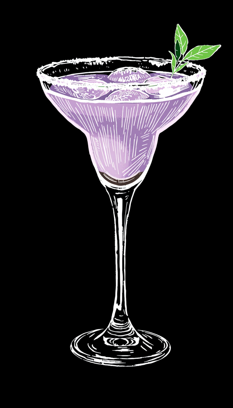 – 6 cl Cardos Blanco Tequila – 3 cl Orange Liquor – 3 cl Limettensaft – 3 cl Kokoswasser – 0,5 cl Lavendelsirup